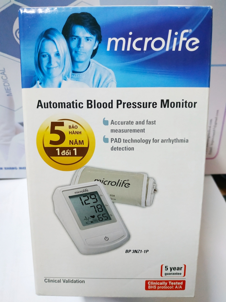 Máy đo huyết áp Microlife BP 3NZ1-1P thế hệ mới với thiết kế nhỏ gọn và thân thiện, hoạt động đơn giản chỉ 1 nút bấm thích hợp sử dụng tại gia đình cho người cao tuổi muốn sử dụng máy đo huyết áp thao tác đơn giản và chính xác. Tích hợp công nghệ PAD phát hiện rối loạn nhịp tim giúp cảnh báo sớm các bệnh tim mạch.